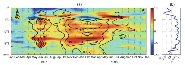 A diferencia de los vientos alisios del sudeste,los vientos costeros suelen intensificarse durante los eventos El Niño. Según Chamorro et al (2018), durante el Niño 1997-1998, el principal factor involucrado en la intensificación del viento fue el gradiente de presión a lo largo de la costa, impulsado por anomalías de temperatura del aire relacionadas con el calentamiento heterogéneo de la temperatura superficial del mar. En cambio, los fenómenos a gran escala, como el APS, juegan un papel modulatorio pero no determinante. Patrones similares de intensificación de vientos costeros han sido observados en otros eventos de El Niño.