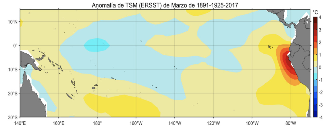 Se considera que los eventos extremos de 1891, 1925 y 2017 corresponden a esta clase de fenómenos (Takahashi y Martinez, 2017; Peng et al., 2019; Anculle et al., 2021; Espinoza-Morriberon et al., 2021). A diferencia de los eventos El Niño asociados al ENOS, en El Niño Costero, las ondas Kelvin cálidas parecen jugar un rol secundario en el desarrollo del calentamiento, lo cual contribuye a que éste se concentre en la capa superficial.